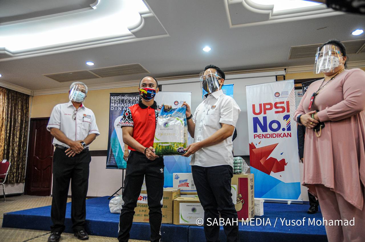 TANJUNG MALIM : Seramai 134 pelajar Universiti Pendidikan Sultan Idris (UPSI) yang berasal dari negeri Sabah yang terkesan dengan pelaksanaan Perintah Kawalan Pergerakan (PKP) menerima bantuan berupa Bakul Makanan termasuk ‘Hygiene Kit’.