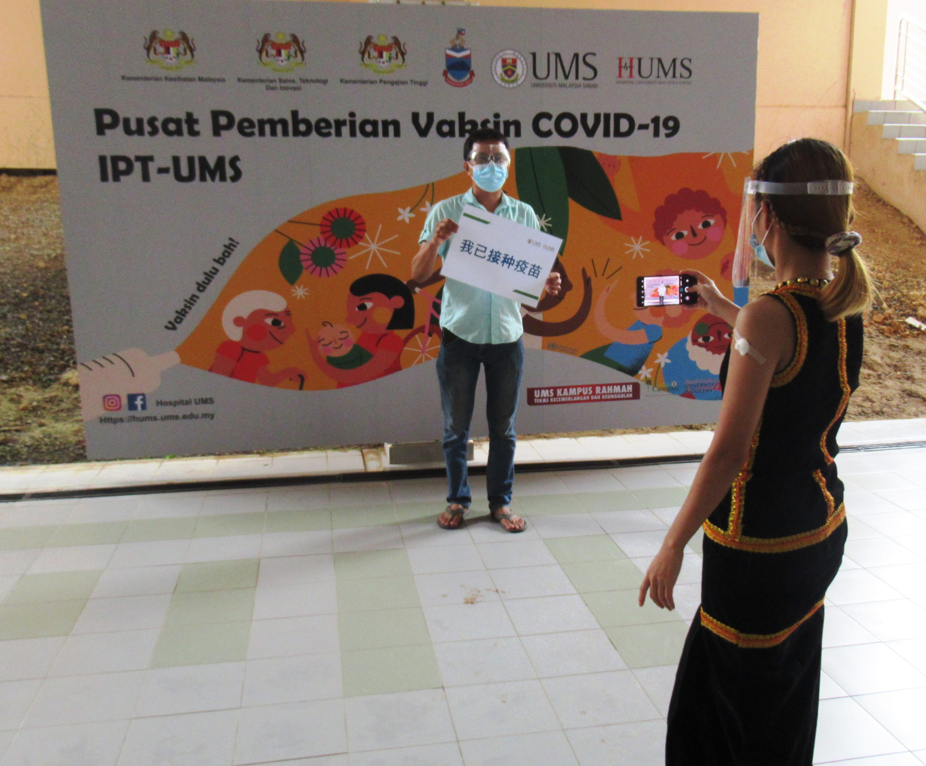“Ini juga merupakan baju kahwin saya empat tahun yang lalu dan hari ini suami turut menerima vaksin bersama saya,” katanya ketika ditemui Sabah Media di PPV IPT-UMS disini hari ini.