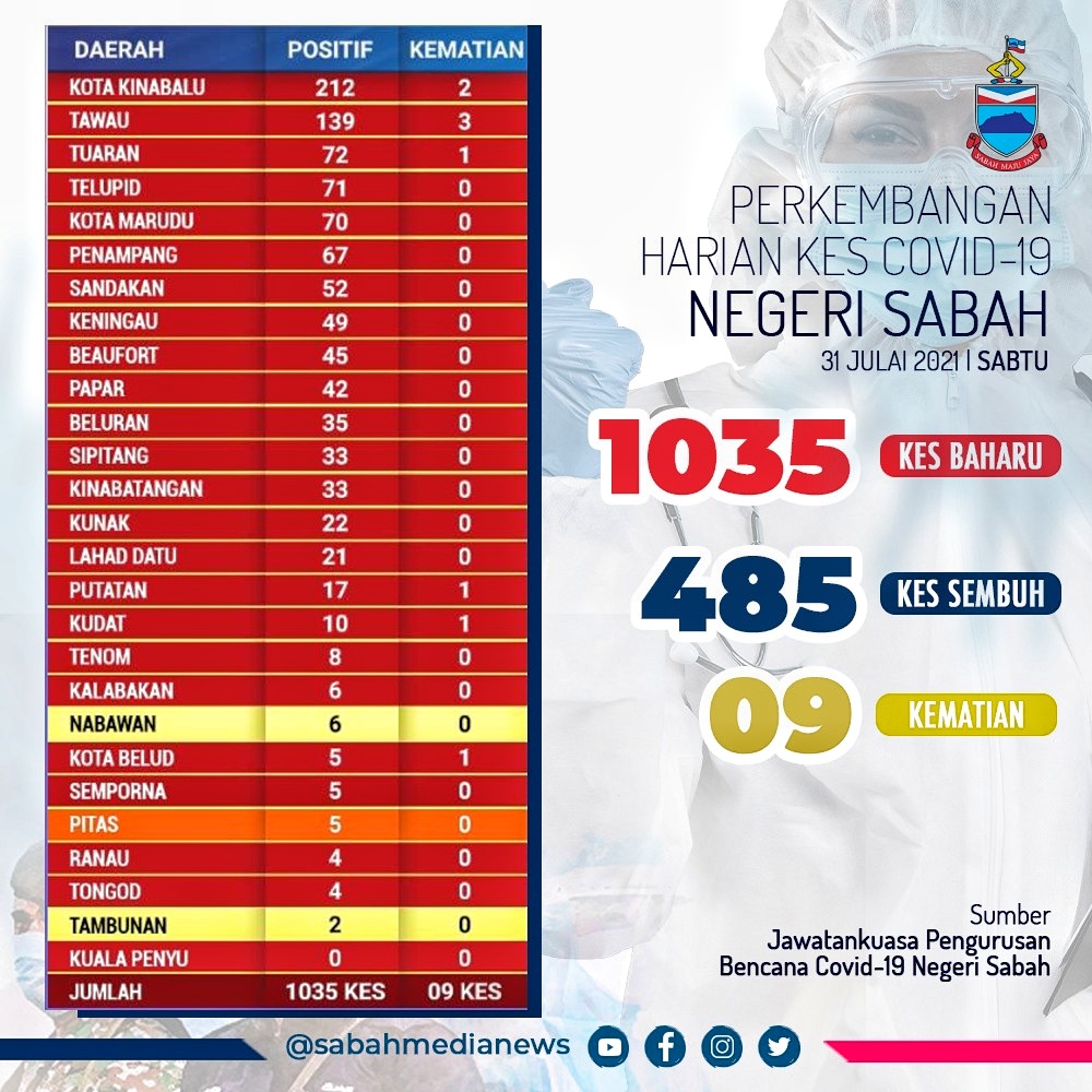 Manakala Kluster Jalan Corak, Tongod menokok satu kes baharu hari ini, menjadikan jumlah kumulatif kes positif sebanyak 12 kes.