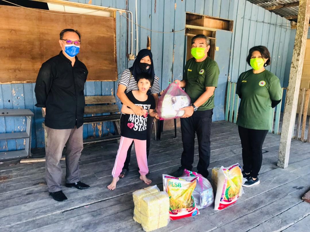Manakala 25 bakul makanan pula diedarkan kepada golongan ibu tunggal dan Orang Kurang Upaya (OKU) di Daerah Kinabatangan yang diwakili oleh Sylvia Alsisto dan Hussien Muin.