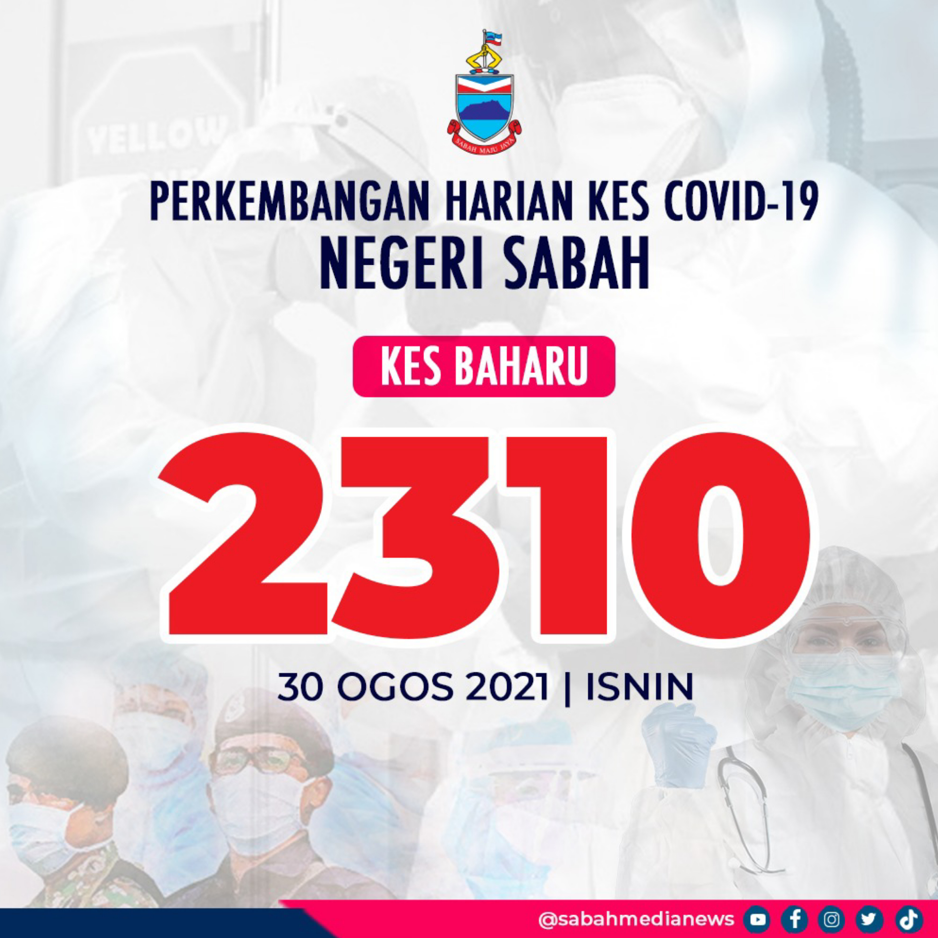 KOTA KINABALU: Sabah mencatatkan kes sembuh sepenuhnya lebih tinggi iaitu 3,067 berbanding kes positif baharu COVID-19 2,310 kes hari ini, selain turut merekodkan 42 kes kematian iaitu 10 di Tuaran, sembilan di Kota Kinabalu, tujuh di Tawau, empat di Sandakan, tiga di Beaufort, dua di Penampang, Papar dan Keningau manakala Kudat, Putatan dan Kinabatangan masing-masing mencatatkan satu kes kematian.
