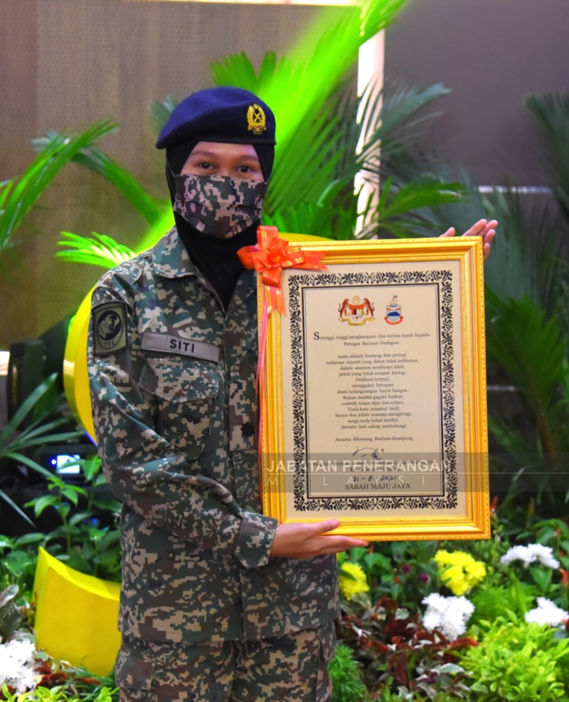 Bagi frontliner wanita, Leftenan Muda Rejimen 507 Askar Wataniah, Sitii Zubaidah Kanisius @ Benyamin, 25, yang berasal dari Beluran pula menjalankan tugas semasa Op Penawar sepanjang pandemik sentiasa sibuk tetapi masih sempat membahagikan masa untuk tugas hakikinya di Koperasi Pekerja Kerajaan Negeri Sabah.