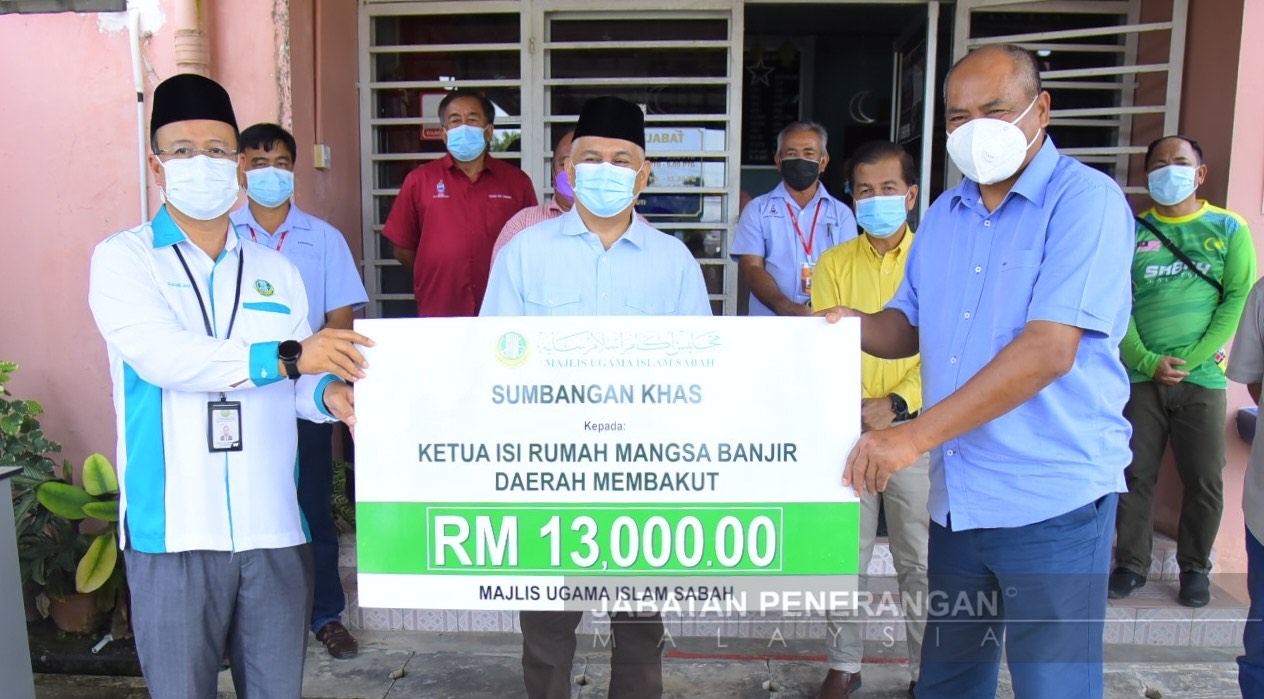 Terdahulu, Arifin menyampaikan bantuan zakat daripada Pusat Zakat Sabah Majlis Ugama Islam Sabah (MUIS) berjumlah RM13,000 kepada 26 mangsa banjir di Pejabat Daerah Kecil Membakut.