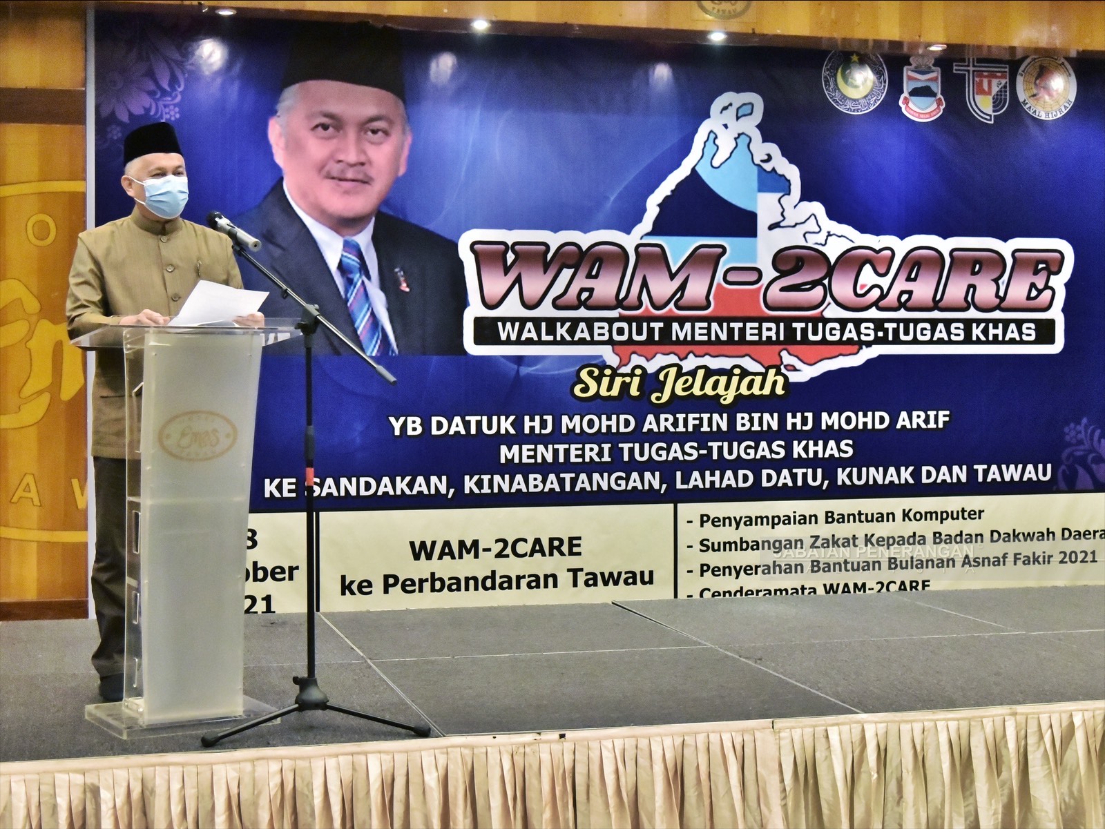 Menteri Tugas-Tugas Khas Sabah Datuk Arifin Arif berkata, bantuan itu disampaikan secara simbolik dan berharap agar agihan tersebut dapat meringankan beban asnaf fakir ketika berdepan dengan pandemik Covid-19.