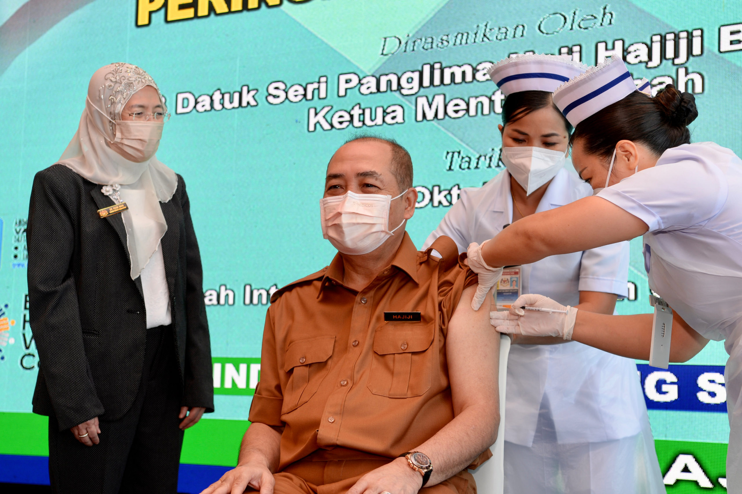 Hajiji mendahului sebagai penerima pertama daripada barisan menteri kabinet negeri untuk menerima suntikan vaksin dos penggalak seterusnya menandakan pelancaran program.