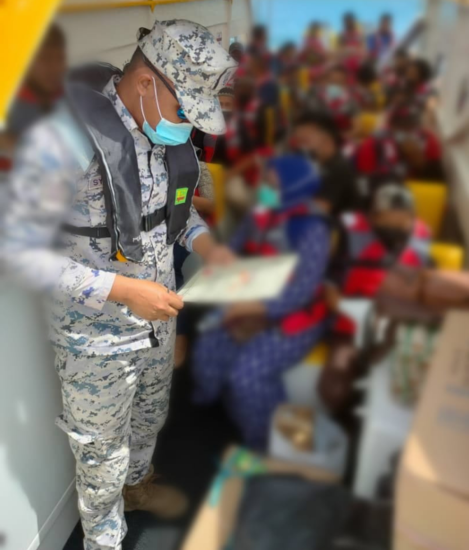 Pengarah Zon Maritim Tawau, Kepten Maritim Siva Kumar A/L Vengadasalam berkata, bot tersebut dikesan bergerak dari Jeti CIQ Tawau menuju ke Pulau Sebatik dengan membawa penumpang berlebihan dan telah ditahan untuk pemeriksaan oleh bot ronda Zon Maritim Tawau yang sedang melaksanakan rondaan Op Sejahtera/Op Cegah PATI Selatan COVID-19 pada kira-kira jam 11.50 pagi semalam.