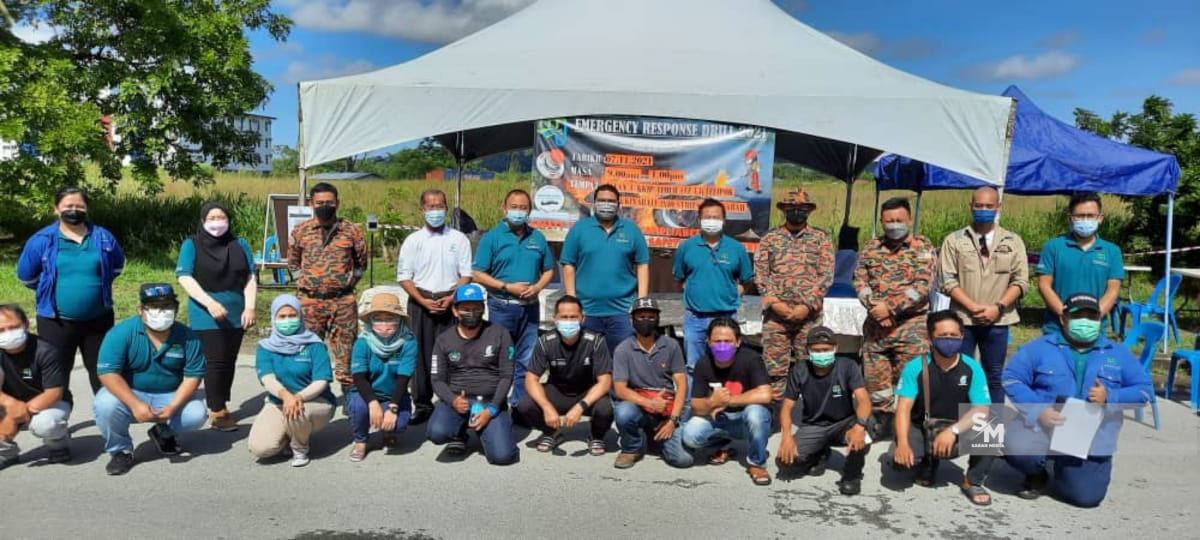 TUARAN: Syarikat Maja Warisan Sdn Bhd mengadakan Latihan Tindak Balas Kecemasan (Emergency Response Drill) 2021 di Jalan 4, Taman Perindustrian Kota Kinabalu (KKIP), disini semalam.