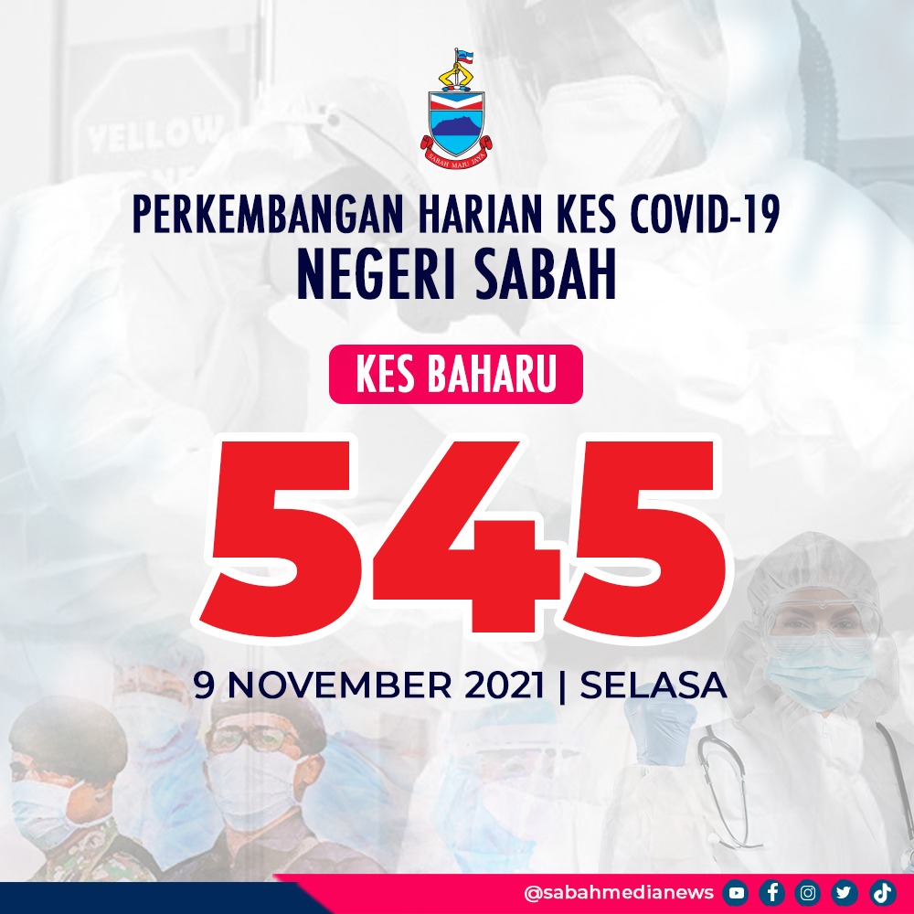 KOTA KINABALU : Kes jangkitan COVID-19 di Sabah kembali meningkat secara mendadak dengan penambahan sebanyak 181 kes daripada 364 kes semalam kepada 545 hari ini.
