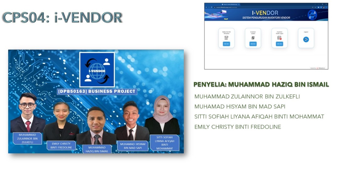 Kumpulan CPS04 daripada Jabatan Perdagangan yang dianggotai oleh Muhammad Zulainnor Zulkefli, Muhamad Hisyam Mad Sapi, Sitti Sofiah Liyana Afiqah Mohammat dan Emily Christy Fredoline telah memenangi Anugerah Pilihan Juri dengan projek inovasi mereka iaitu i-Vendor di bawah seliaan pensyarah, Muhammad Haziq Ismail.