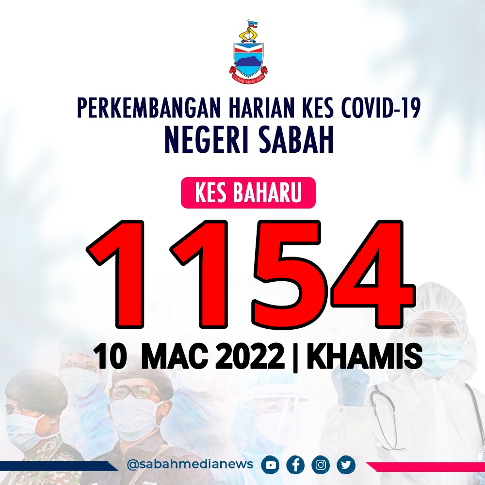 KOTA KINABALU : Kes jangkitan COVID-19 di Sabah kembali mencatat penurunan dengan 1,154 kes baharu dilaporkan pada hari ini iaitu 198 kes lebih rendah berbanding jumlah semalam.