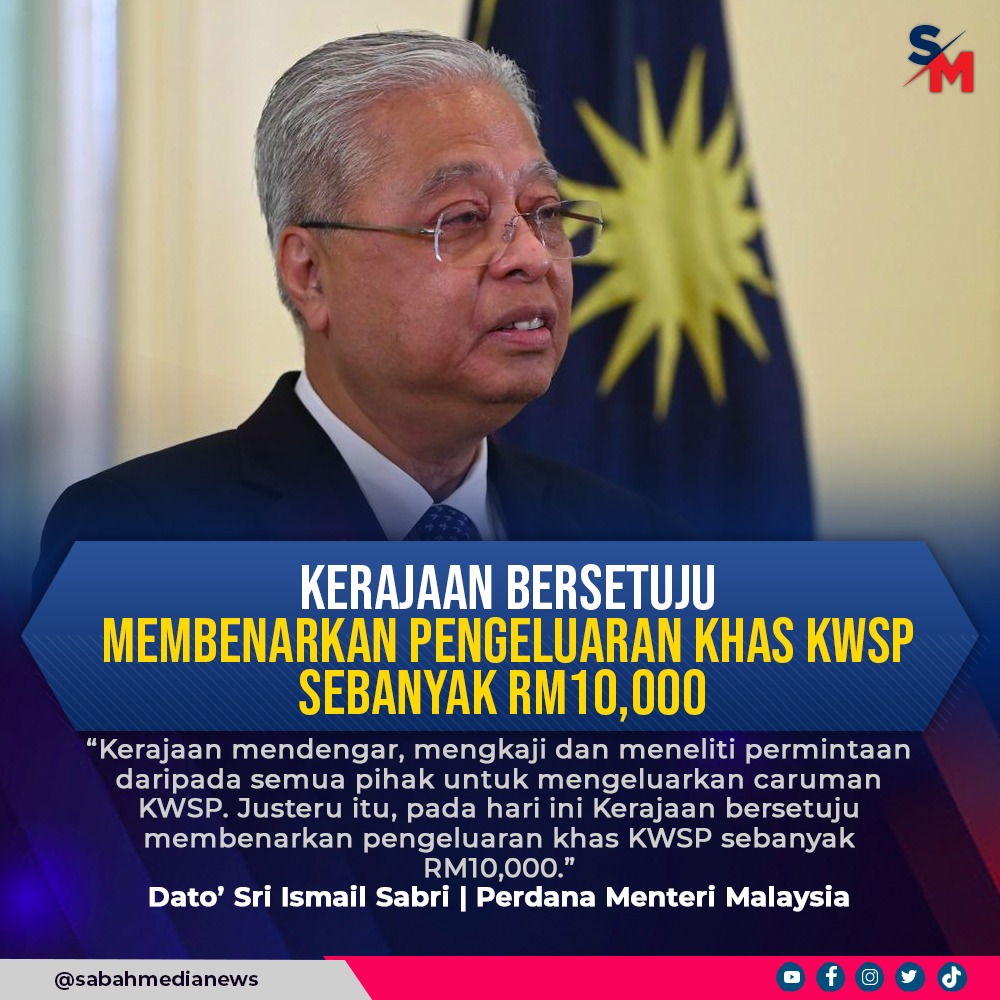 Kerajaan bersetuju membenarkan pengeluaran khas KWSP sebanyak RM10,000 secara sekaligus (one-off) bagi tujuan meringankan beban rakyat yang masih terkesan dengan pandemik.