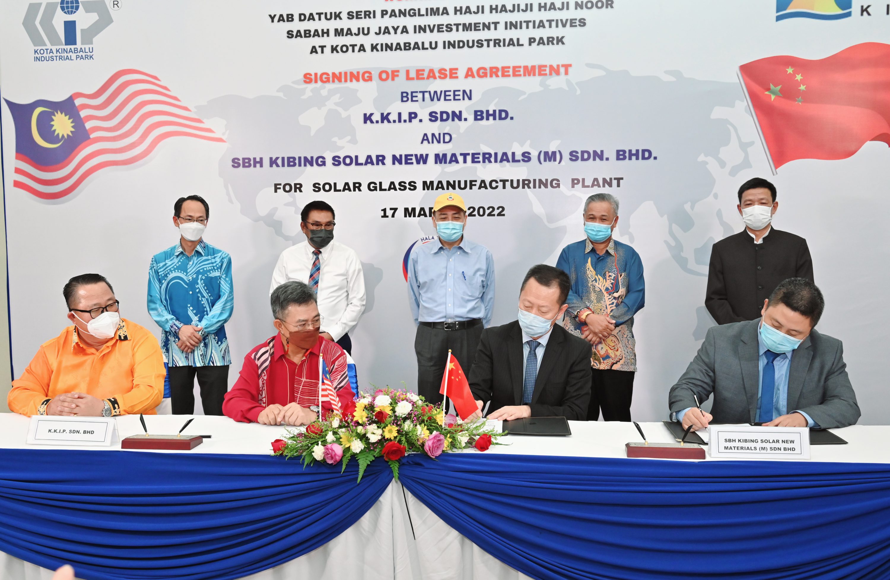 Terdahulu Hajiji menyaksikan Majlis Menandatangani Perjanjian Sewaan (Lease Agreement) diantara KKIP Sdn.Bhd dan SBH Kibing Solar New Materials (M) Sdn. Bhd,selain turut melawat cadangan tapak kilang pembuatan kaca solar (Solar Manufacturing Plant).