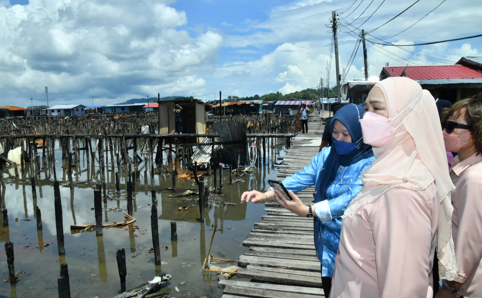 KOTA KINABALU: Isteri Ketua Menteri, Datin Seri Juliah Salag hari ini hadir melawat seterusnya menyampaikan sumbangan kepada mangsa kebakaran di Kampung Landong Ayang, di Kudat, disini hari ini.