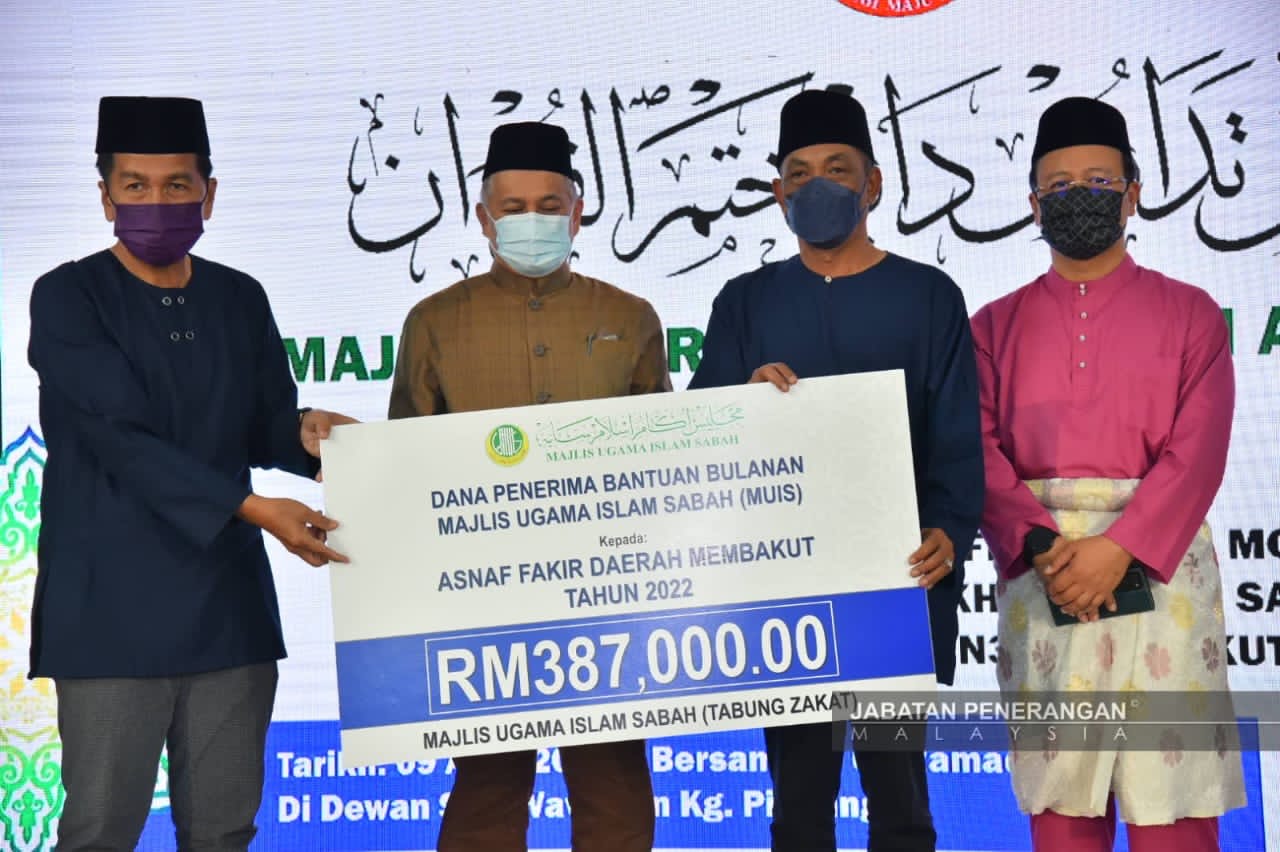 Terdahulu pada majlis itu, Mohd Arifin menyampaikan dana penerima bantuan bulanan asnaf fakir miskin berjumlah RM 387,000 kepada Penolong Pegawai Daerah, Ibrahim Terki, di samping sijil penghargaan serta cenderamata kepada 250 peserta tadarus.