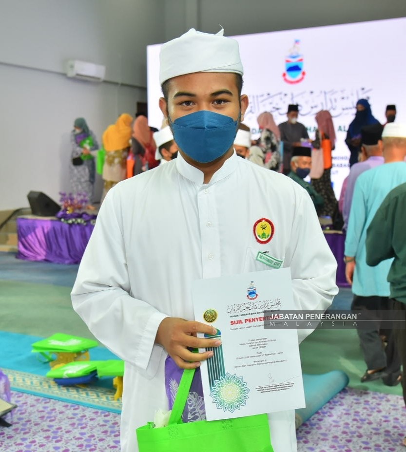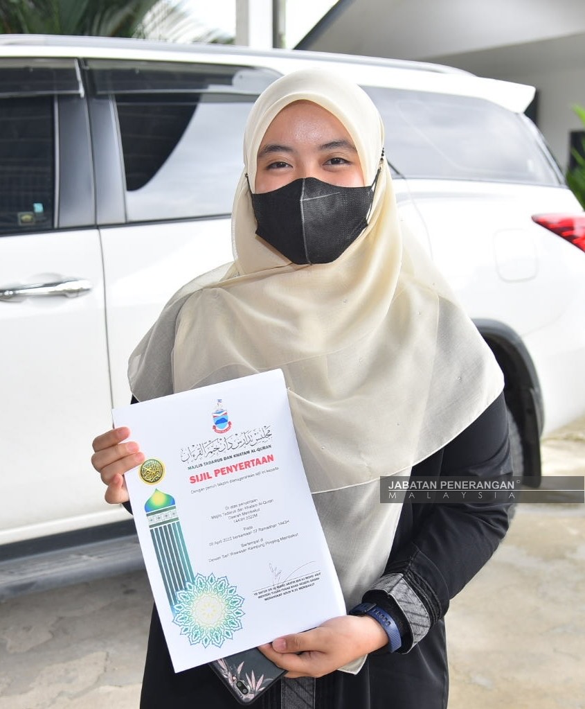 Turut gembira berakhirnya pandemik COVID-19, pelajar Sekolah Menengah Kebangsaan (SMK) Membakut, Nur Mirrah Hawaniz Pinsu Osman, 19, yang membaca Al 290 hingga 299.