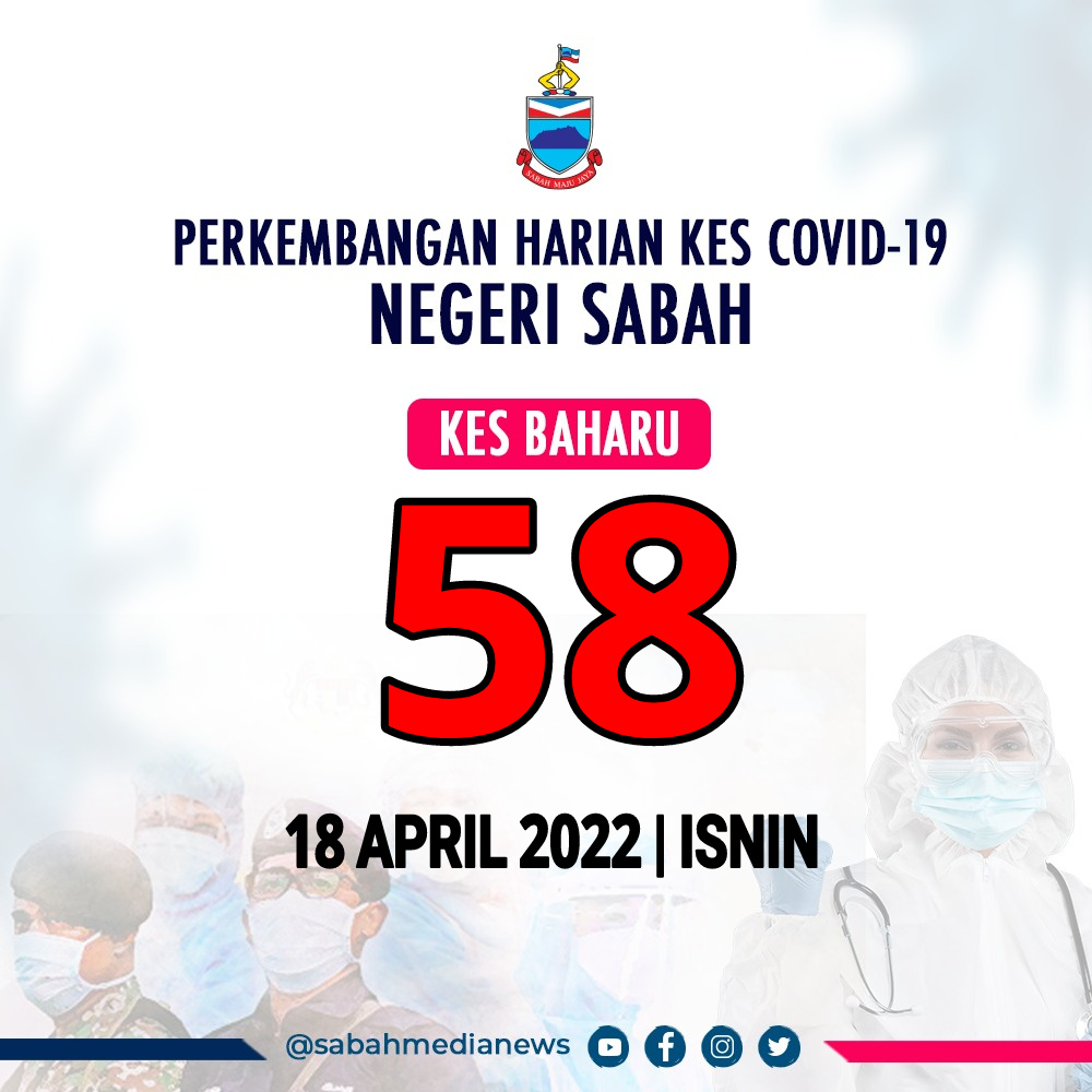 Menteri Kerajaan Tempatan dan Perumahan Sabah Datuk Seri Masidi Manjun berkata, Sabah turut mencatatkan penurunan kes jangkitan COVID-19 tiga hari berturut-turut apabila sebanyak 58 kes dilaporkan pada hari ini.