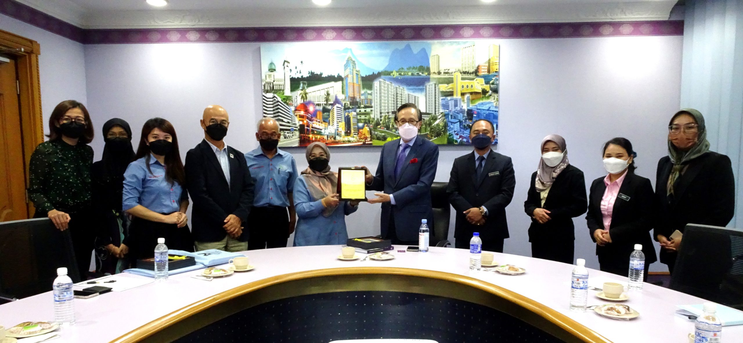 Terdahulu, Naib Presiden ILAM Central Malaysia Prof LAr. Dr. Nor Atiah Ismail bersama rombongan mengadakan kunjungan hormat terhadap Menteri Kerajaan Tempatan dan Perumahan Sabah Datuk Seri Masidi Manjun.