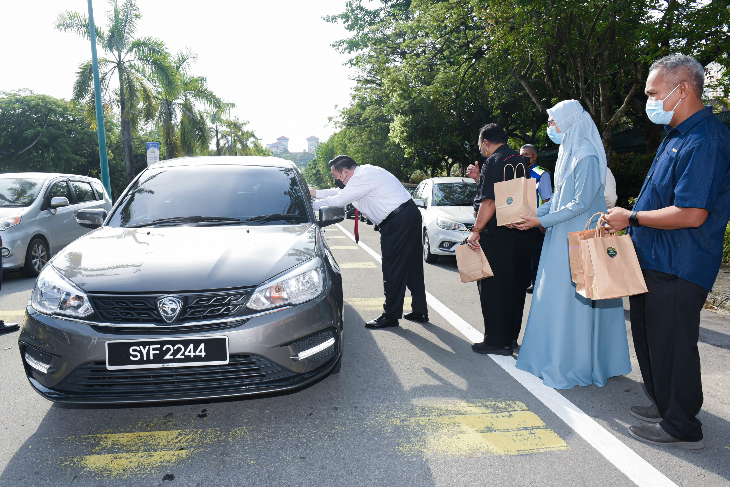 Agihan disempurnakan oleh Naib Canselor, Prof. Datuk ChM. Ts. Dr. Taufiq Yap Yun Hin di pintu utama UMS.