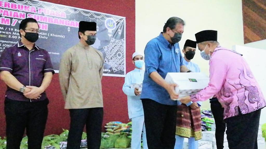 Selain itu, beliau turut mengagihkan kurma kepada wakil setiap surau di Kiulu. Bakul makanan itu disumbangkan oleh syarikat Kim Teck Cheong.