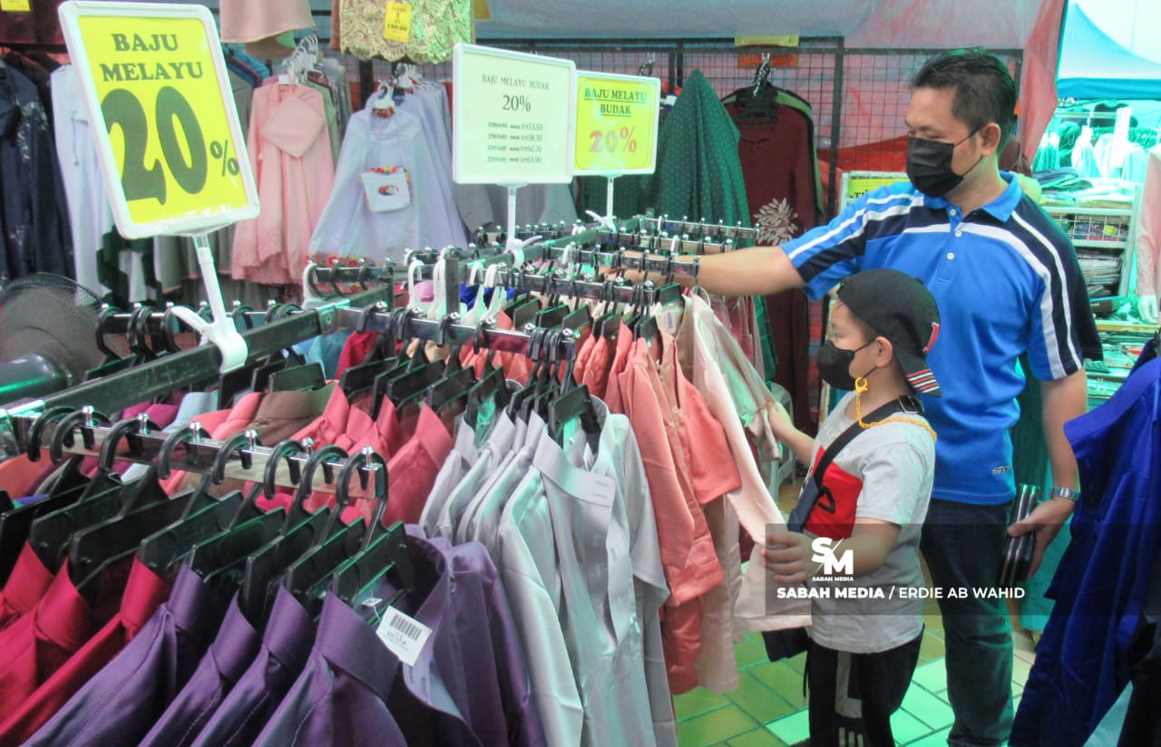 Bagi Mohd Zahrin Dinin,43, berkata, beliau bersama keluarga telah datang ke Kota Kinabalu dari Beaufort sejak semalam bagi membawa isteri dan anak-anak mendapatkan keperluan Aidilfitri.