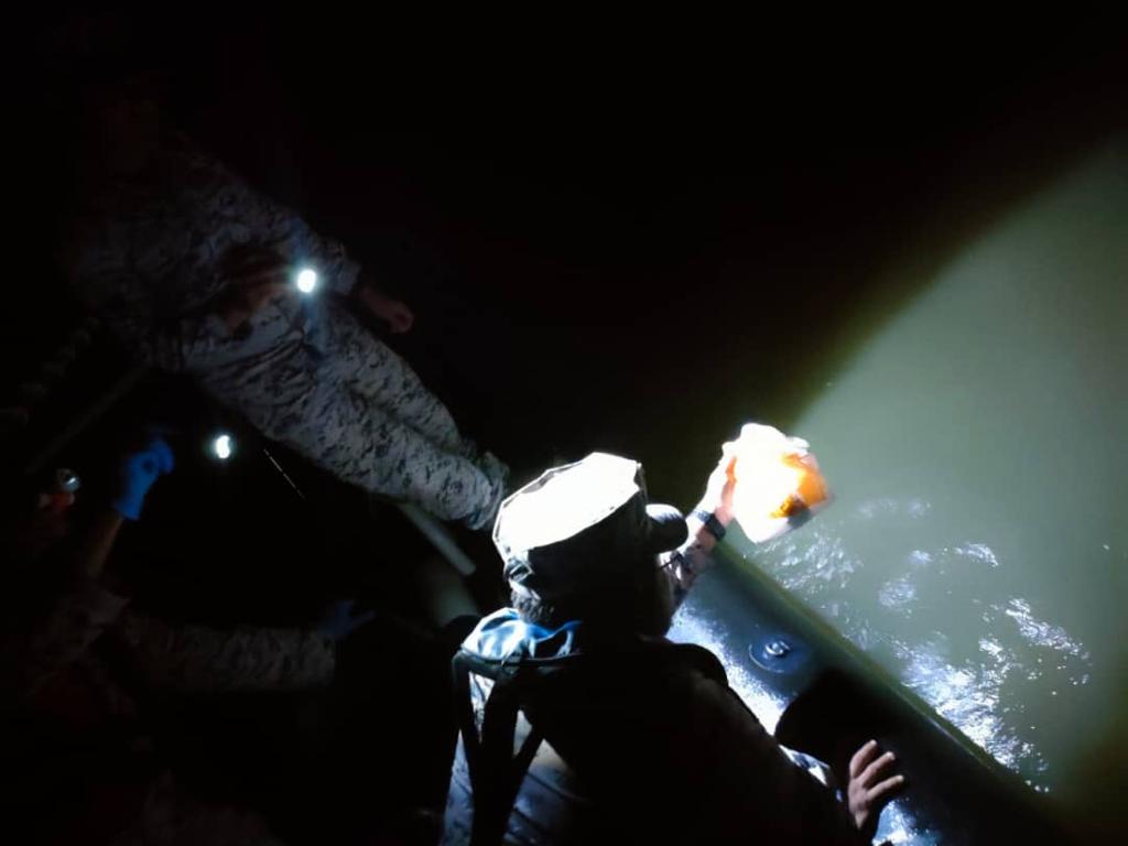 “Bot peronda melakukan pengejaran namun terbatas berikutan faktor perairan cetek. Bot peronda kemudian berpatah balik untuk mengesan bungkusan yang dibuang.
