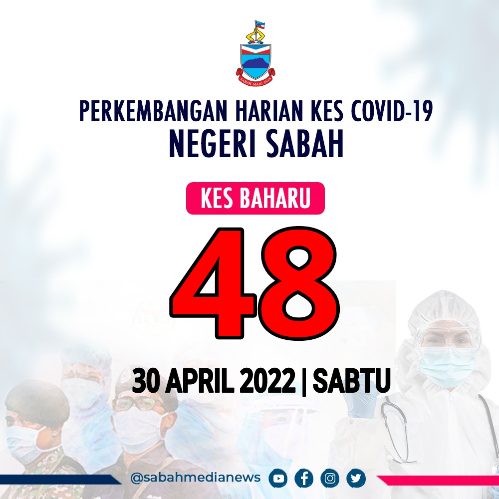 “Hari ini Kota Kinabalu kembali mencatatkan kes baharu dua angka dengan 12 kes (+4). Semua daerah lain mencatatkan kes satu angka termasuk 12 daerah yang tidak merekodkan sebarang kes baharu dalam tempoh 24 jam yang lalu.