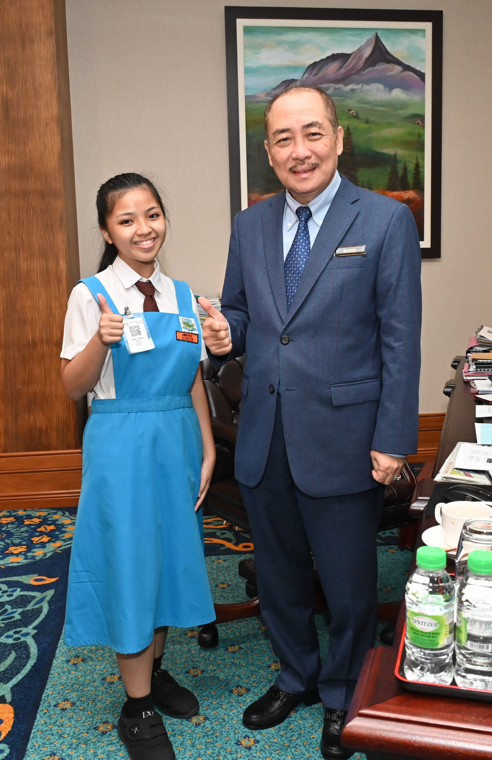 “Saya yakin mereka mampu melakukan yang terbaik. Saya mengucapkan selamat berjaya”, kata Hajiji semasa menemui Amberly dan ibu-bapanya di pejabatnya di Menara Kinabalu, hari ini.