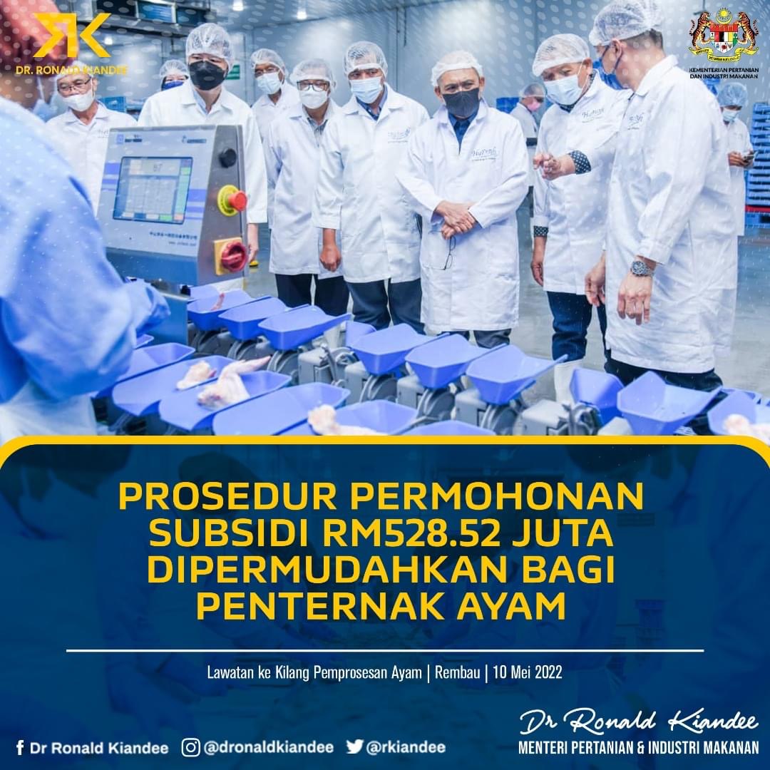 Ronald berkata, kadar pemberian subsidi setakat ini adalah RM0.60/kg bagi ayam pedaging dan RM0.05/biji bagi telur semua kategori melibatkan penternak persendirian, penternak “integrator/semi-integrator” dan penternak kontrak melibatkan RM528.52 juta yang memanfaatkan 2,255 individu.