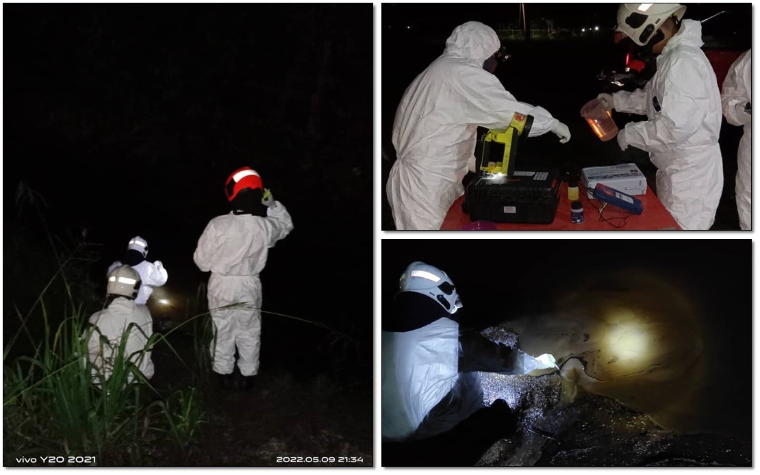 Misran berkata pasukan bomba bersama-sama agensi lain turut melakukan pemantauan di sekitar Sungai Rugading dan Jabatan Kimia mengambil sampel air di dua lokasi untuk dianalisis.