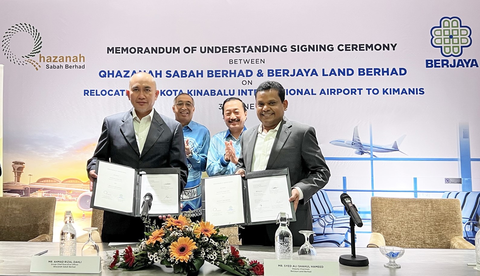 KUALA LUMPUR: Syarikat berkaitan kerajaan (GLC) negeri, Qhazanah Sabah Berhad (QSB) menandatangani Memorandum Persefahaman (MoU) dengan sebuah syarikat pemaju hartanah Berjaya Land Berhad (B-Land) bagi menerokai kemungkinan pemindahan Lapangan Terbang Antarabangsa Kota Kinabalu (KKIA) ke Kimanis.