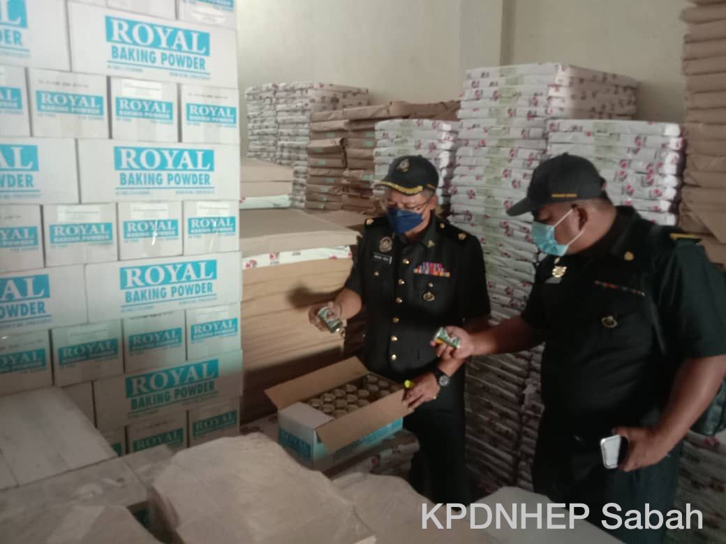 “Serbuan tersebut dijalankan oleh dua pasukan pegawai penguat kuasa KPDNHEP Sabah yang terdiri daripada tujuh orang anggota bersama-sama dengan lima orang wakil kepada pemilik cap dagang berdaftar untuk jenama ‘Royal Baking Powder’ di dua buah premis perniagaan berbeza lokasi di sekitar Tawau.