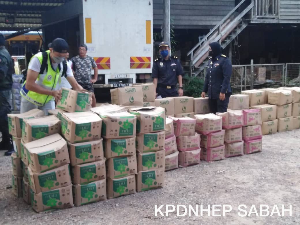 Pengarah Pejabat KPDNHEP Sabah Georgie Abas berkata, hasil serbuan telah berjaya merampas sebanyak 402 minyak masak peket satu kilogram (kg); 864 kg gula pasir dan 914 kg tepung gandum.