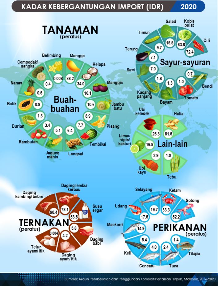 Mengikut Timbalan Menteri Pertanian dan Industri Makanan, Datuk Seri Ahmad Hamzah, jumlah import makanan negara terus meningkat pada kadar purata 4.1 peratus setahun daripada RM45.3 billion pada 2015 kepada RM55.4 billion pada tahun 2020. Ini jelas membuktikan bahawa dasar kerajaan belum berjaya untuk menambah-baik agenda keselamatan makanan negara.