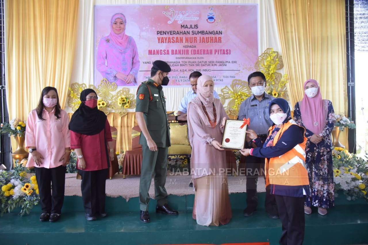 Berikutan itu, Yayasan Nur Jauhar (YNJ) tampil menghulurkan sumbangan kepada 66 Ketua Isi Rumah (KIR) yang terlibat iaitu baki KIR selepas menyantuni 396 KIR pada Jun lalu.