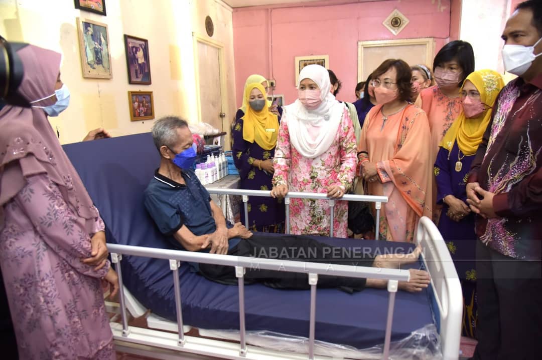 Menerusi Majlis Lawatan Amal ke Institusi Kebajikan sempena Ulang Tahun Keputeraan Seri Paduka Baginda Yang Di-Pertuan Agong Peringkat Negeri Sabah 2022, Toh Puan Norlidah turut menyampaikan sumbangan barang keperluan pembersihan serta katil homeward.