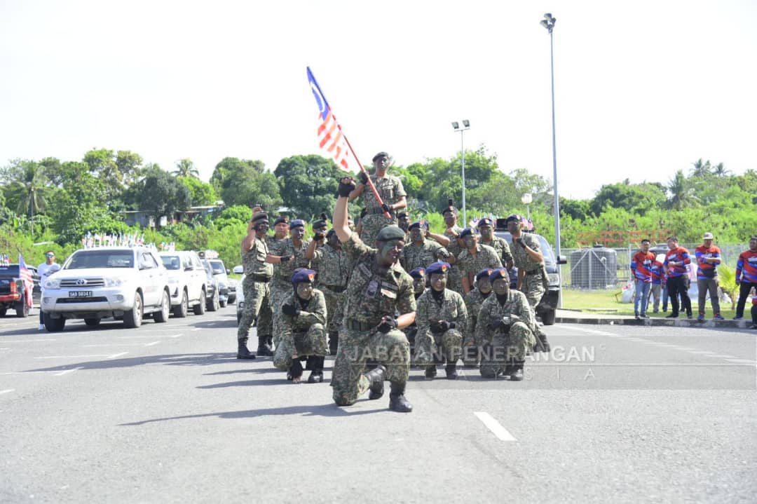 LAHAD DATU : Persembahan Tarian perang atau ‘Dance War’ membuka tirai perjalanan hari keenam Konvoi Kembara Merdeka Keluarga Malaysia (KMKM) 2022 di sini semalam.