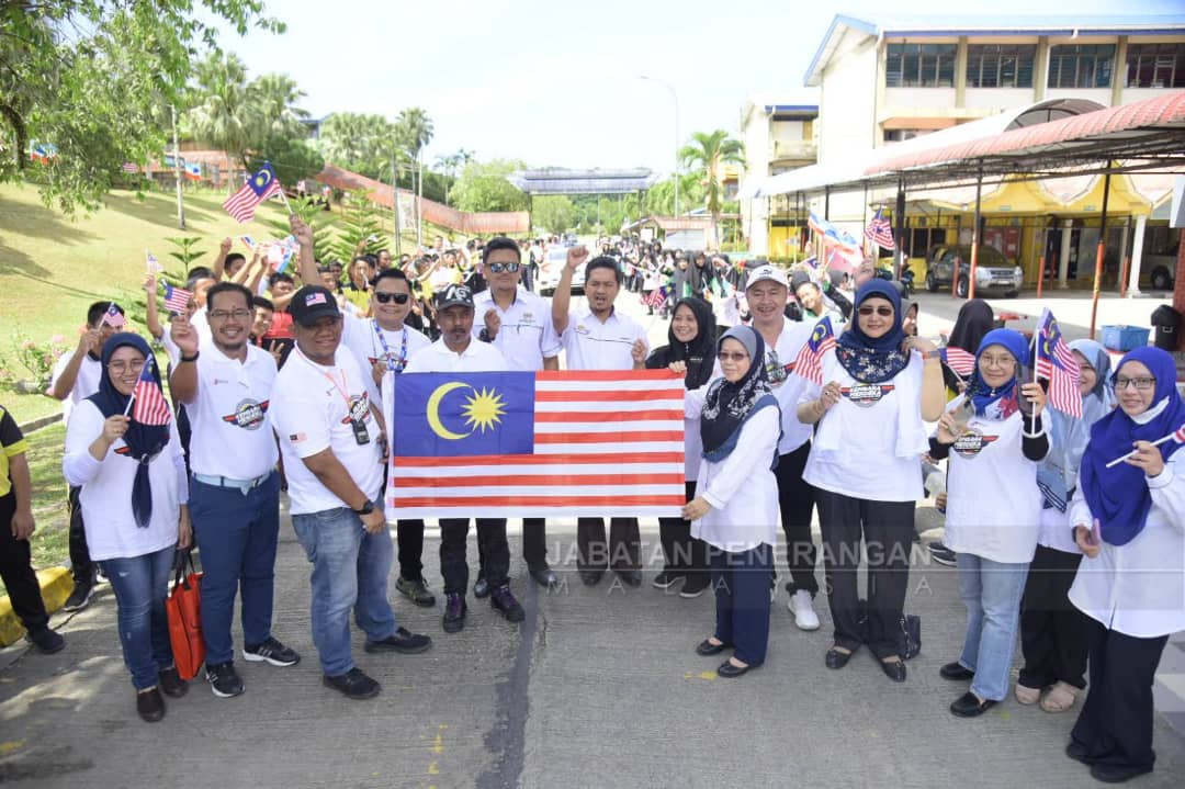 Terdahulu, Konvoi KMKM 2022 yang diketuai Ketua Penolong Pengarah Bahagian Gerak Saraf Dan Pengurusan Isu Jabatan Penerangan Sabah, Busmin Brahim singgah di jejantas SK St Dominic untuk memasang 50 helai Jalur Gemilang.