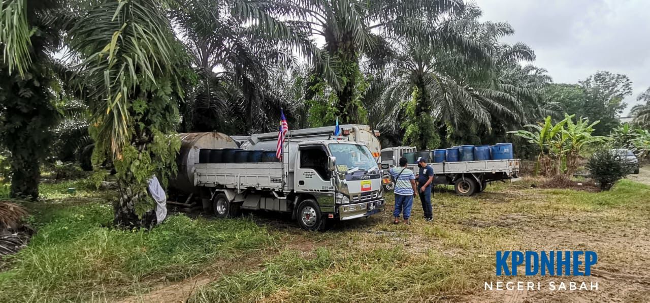 Pengarah Pejabat KPDNHEP Sabah Georgie Abas berkata, selain itu turut ditemui alat-alat yang disyaki digunakan untuk menyeleweng iaitu tiga buah kenderaan lori beserta tong drum dan skid tank turut dirampas dengan nilai sitaan keseluruhan berjumlah RM128,750.