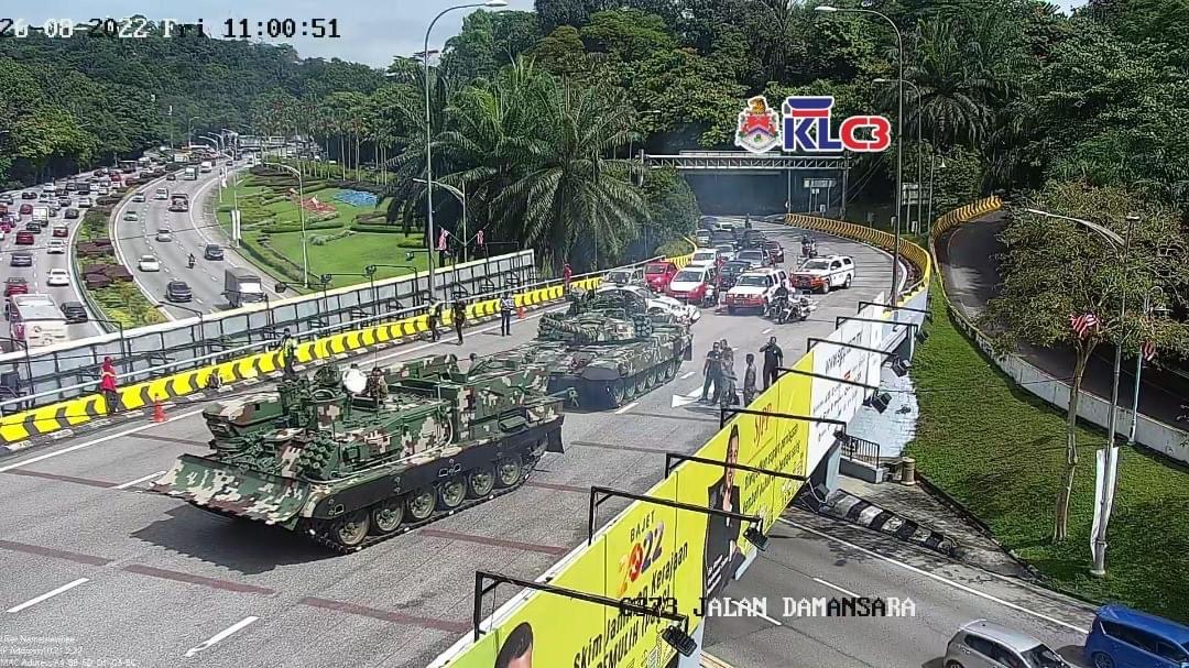 Pusat Info Trafik dan Kawalan Lampu Isyarat (KLCCC) Dewan Bandaraya Kuala Lumpur (DBKL) menerusi Facebook, memuat naik tangkap layar rakaman kamera litar tertutup (CCTV) kejadian itu yang tertera 10.27 pagi, menunjukkan kereta kebal itu menghalang laluan tengah jalan.