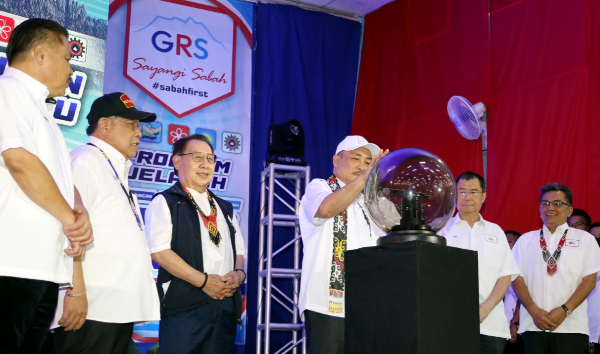 KENINGAU: Ketua Menteri, Datuk Seri Hajiji Noor yang juga Pengerusi Gabungan Rakyat Sabah (GRS) merasmikan Program Jelajah GRS Parlimen Keningau di Dewan Masyarakat Keningau, hari ini.
