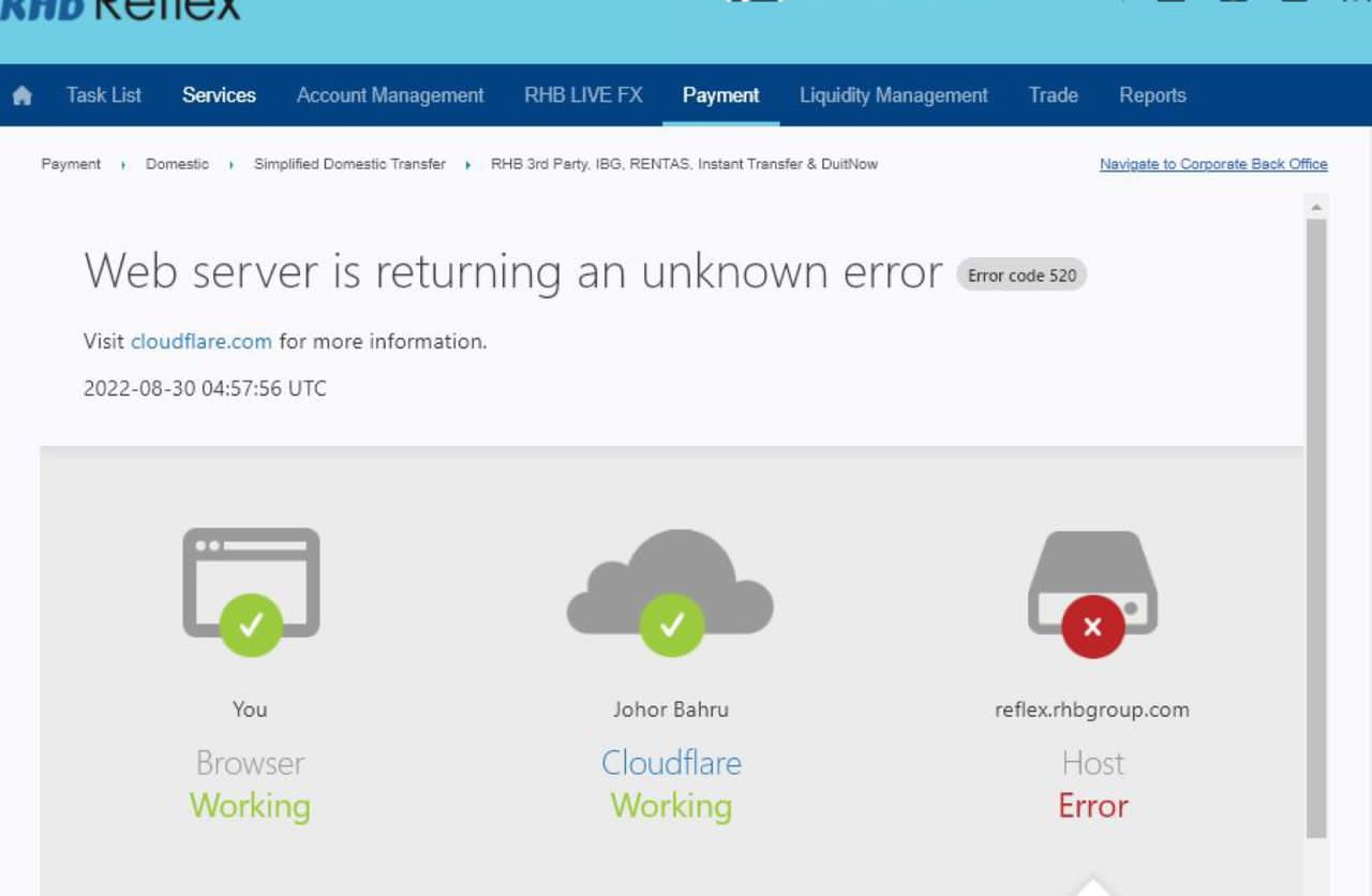 KUALA LUMPUR — Sistem perbankan dalam talian, RHB Reflex kini mengalami gangguan teknikal sehingga tidak boleh diakses oleh pengguna