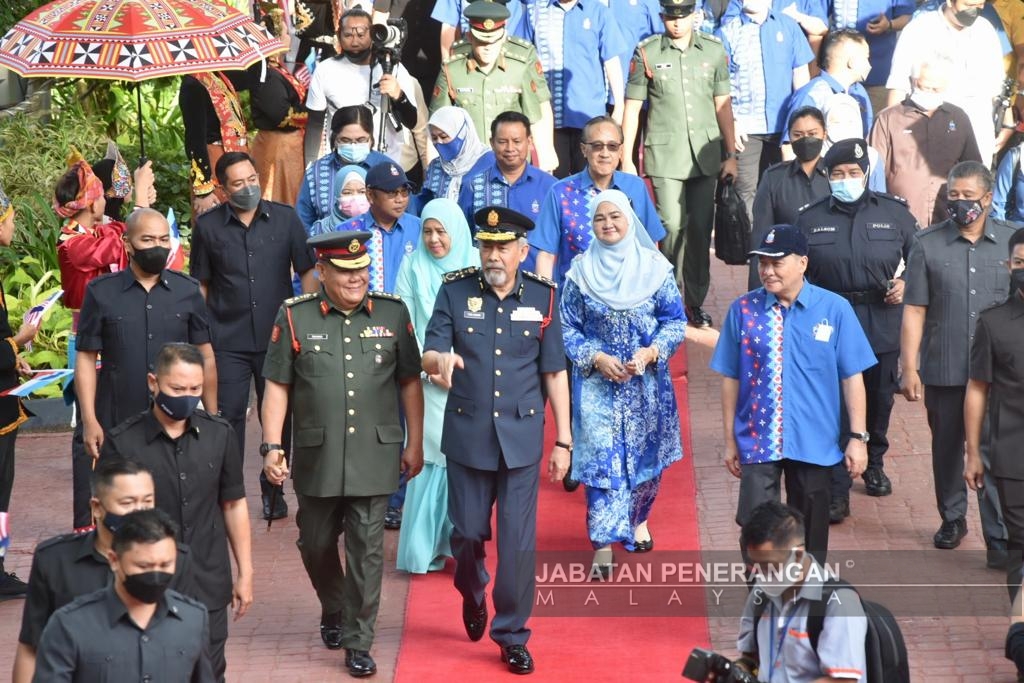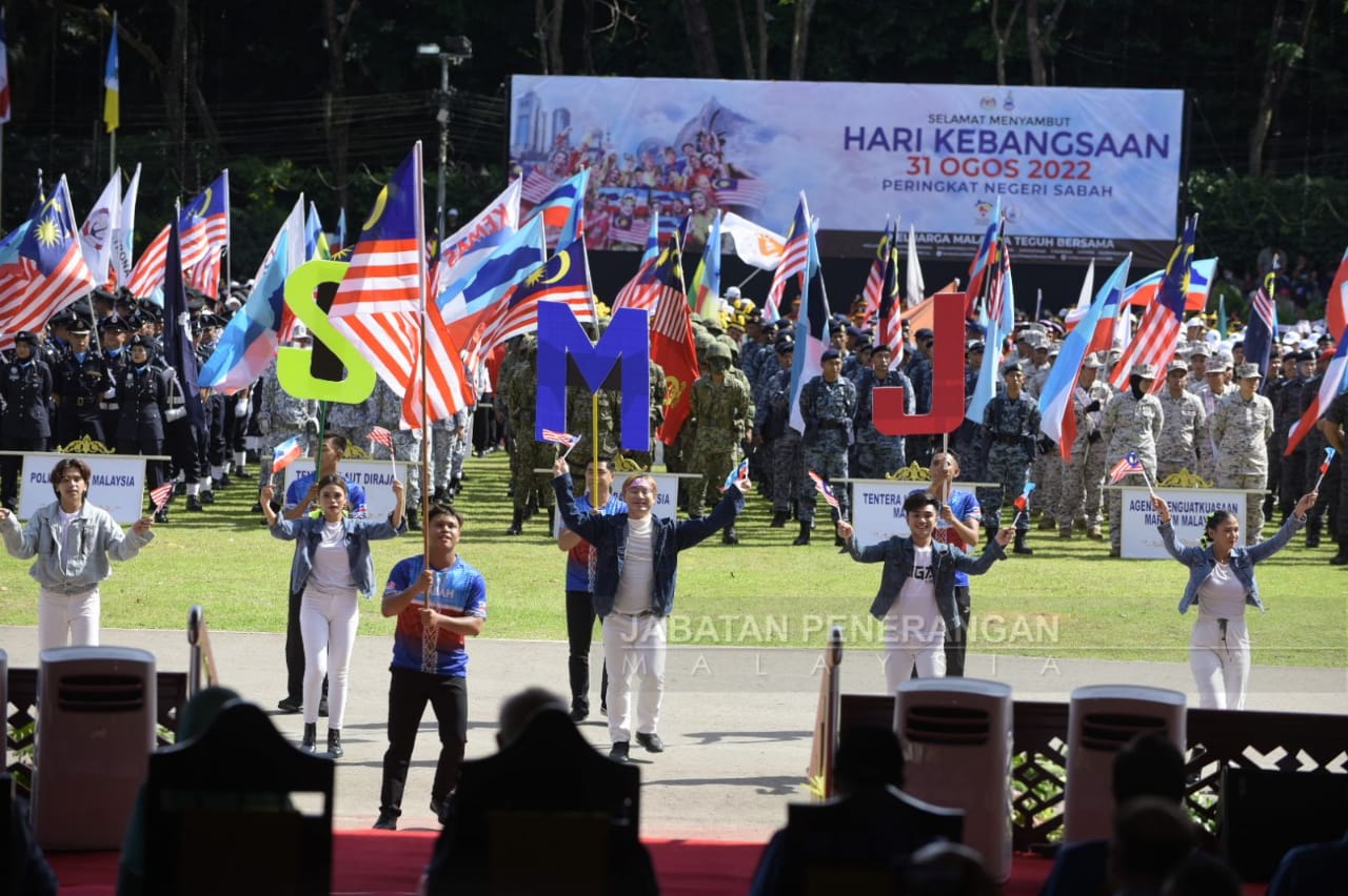 KOTA KINABALU : Sambutan Hari Kebangsaan peringkat negeri Sabah tahun ini kembali diwarnai dengan keceriaan dan kibaran Jalur Gemilang selepas dua tahun hari kemerdekaan negara diraikan tanpa kemeriahan akibat pandemik COVID-19.
