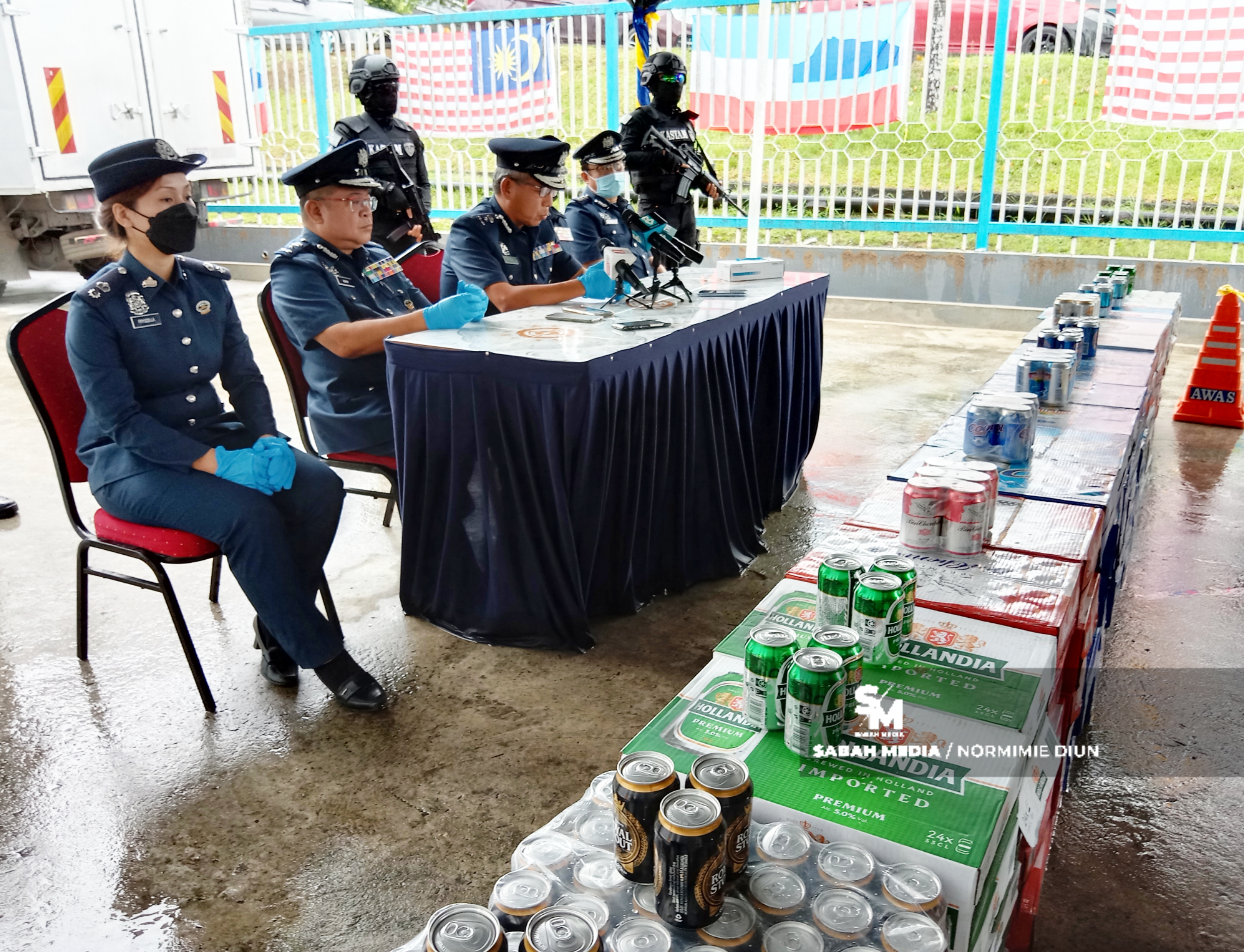 “Semua minuman keras yang dijumpai serta tiga buah lori tiga tan dirampas dan dibawa balik ke pejabat untuk tujuan siasatan lanjut,” katanya pada sidang media di Wisma Penguatkuasaan, di sini hari ini.