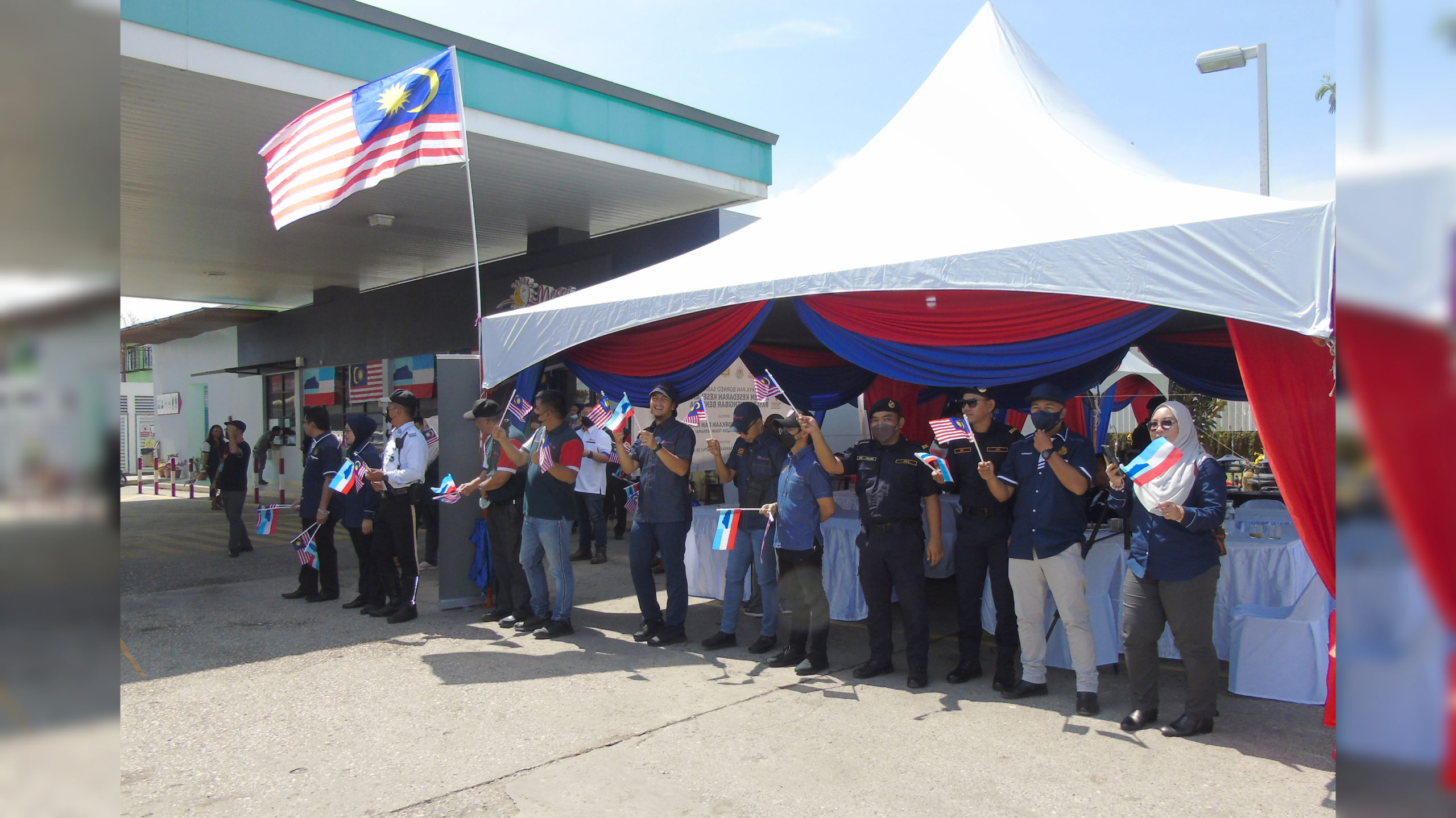 Turut diedarkan risalah keselamatan, tema Hari Kebangsaan dan Hari Malaysia 2022, Jalur Gemilang dan Bendera Negeri serta beg cenderahati.