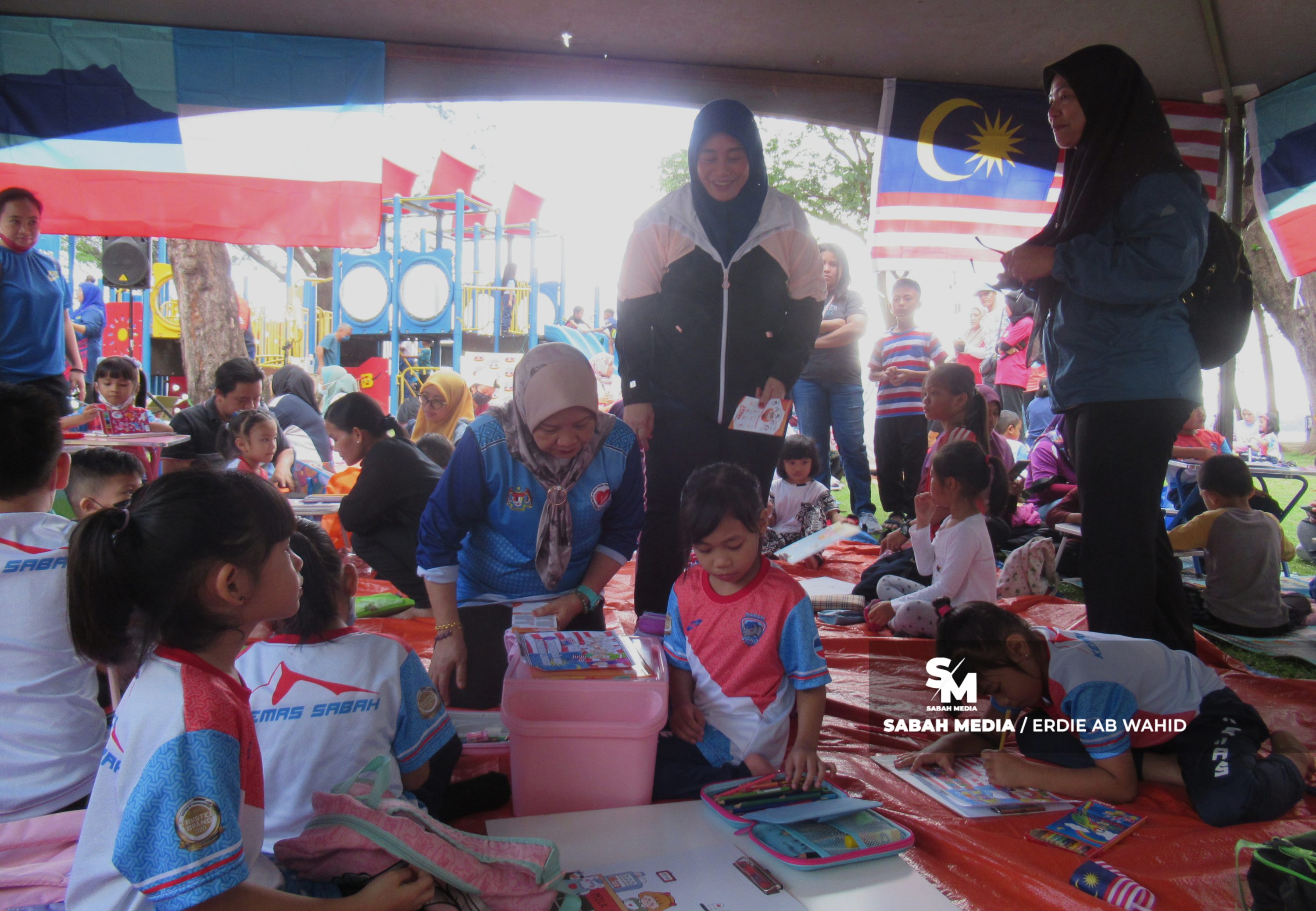 Program anjuran UMNO Bahagian Kota Kinabalu itu turut mengadakan pertandingan mewarna yang disertai murid-murid TADIKA Kemas dan sekolah rendah sekitar Kota Kinabalu.