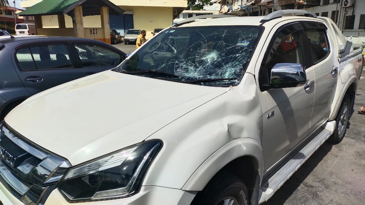 Katanya, setakat ini tiada kemalangan jiwa di laporkan dan hanya satu kenderaan sahaja iaitu jenis Isuzu DMax terlibat cermin bahagian hadapan retak kerana terkena jatuhan serpihan batu konkrit bangunan tersebut.