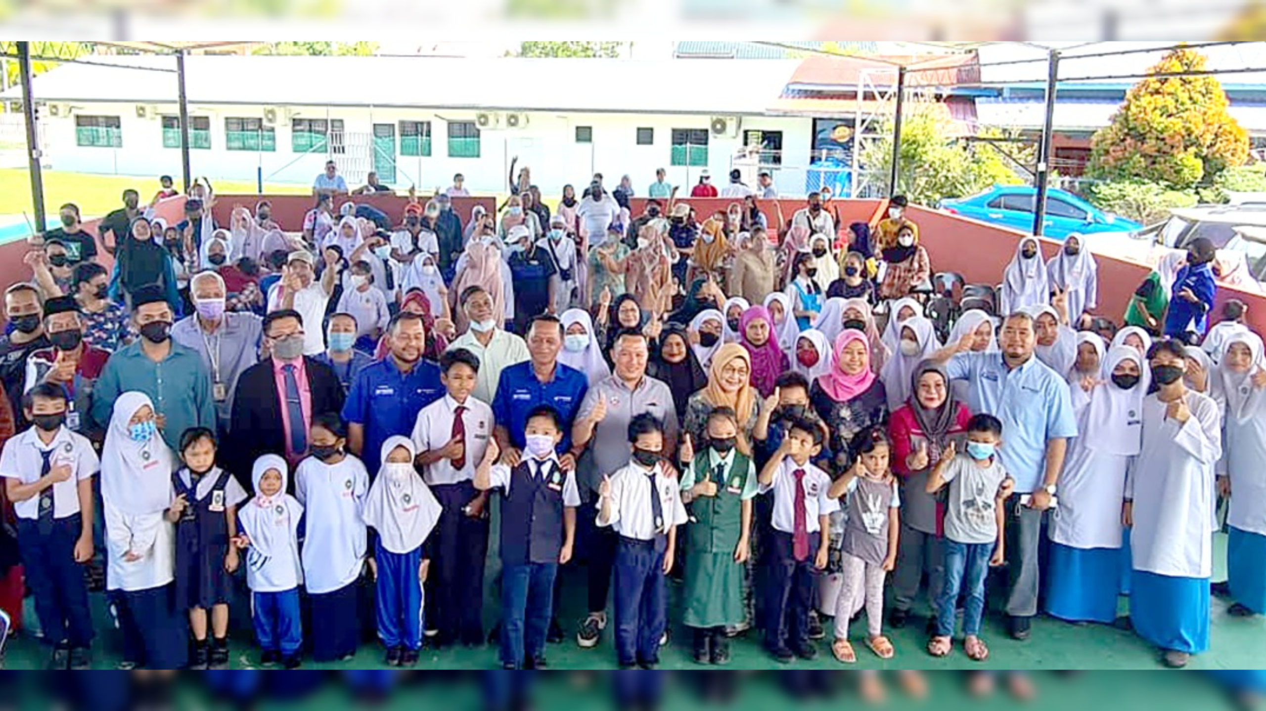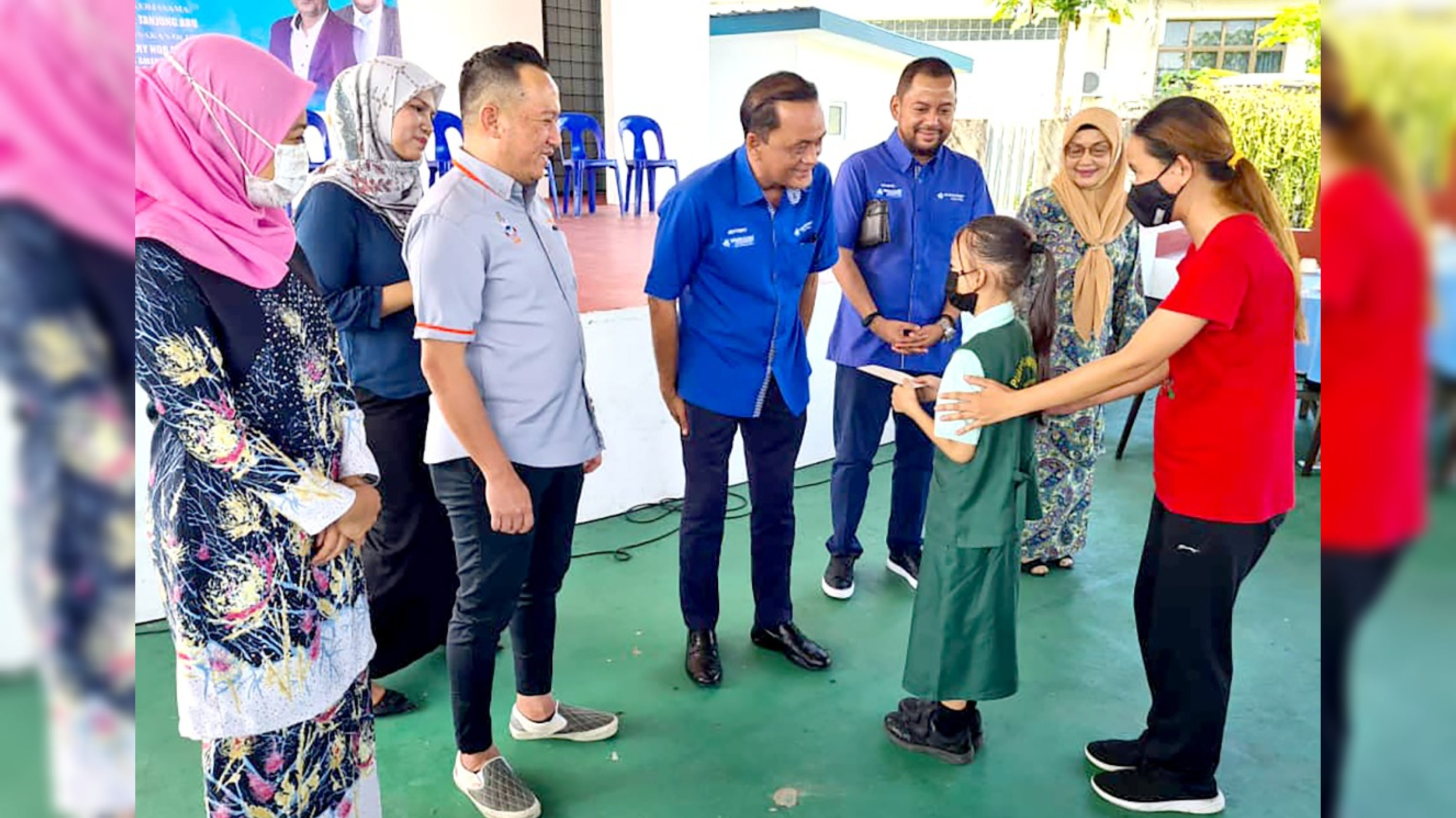 KOTA KINABALU: Yayasan Bank Rakyat menyerahkan sumbangan bantuan persekolahan kepada 106 orang murid serta pelajar sekitar Tanjung Aru dan Sembulan di sini hari ini.