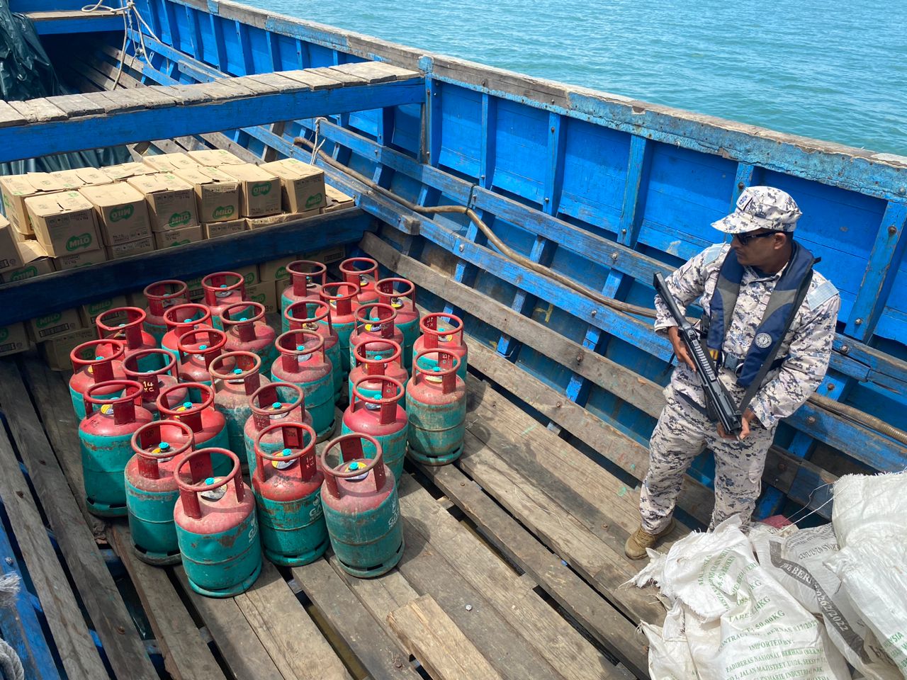 Katanya, hasil pemeriksaan menyeluruh ke atas bot kargo tersebut menemui sejumlah 27 unit tong gas liquefied petroleum gas (LPG) yang disembunyikan di bawah timbunan barang-barang runcit.