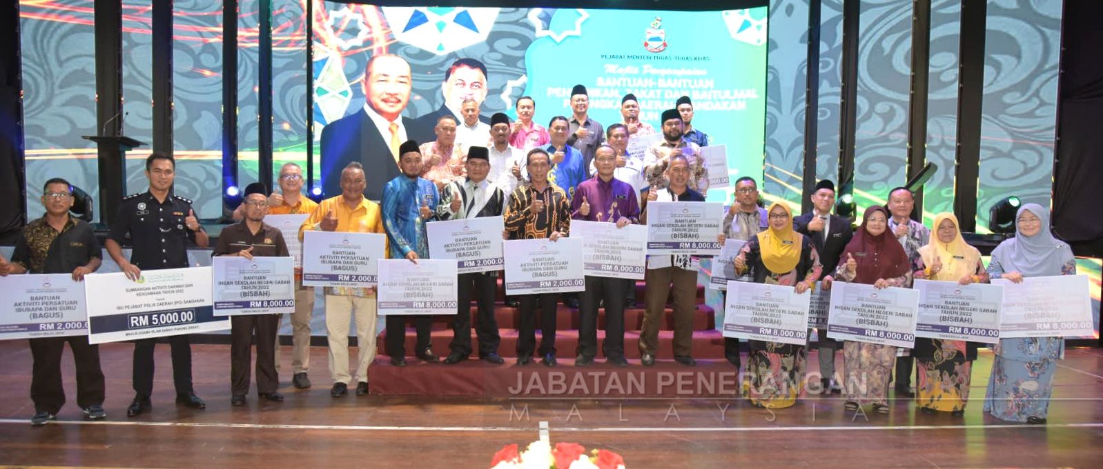 Jumlah itu melibatkan penerima BISBAH yang terdiri daripada Pengetua SMK Gum Gum, Guru Besar SK Batu 16 Gum Gum, Guru Besar SAN Desa Permai, Ulu Dusun Sandakan, Guru Besar SAN Karamunting, Pengetua SMK St Micheal (M), Guru Besar SK Tanjung Papat 1, Guru Besar SAN Tanjung Papat dan Guru Besar SAN KM 2 Jalan Bunga Botan (Elopura), manakala penerima BISBAH adalah YDP PIBG SK Seri Manis danYDP PIBG SK Sri Tanjong Papat 2.