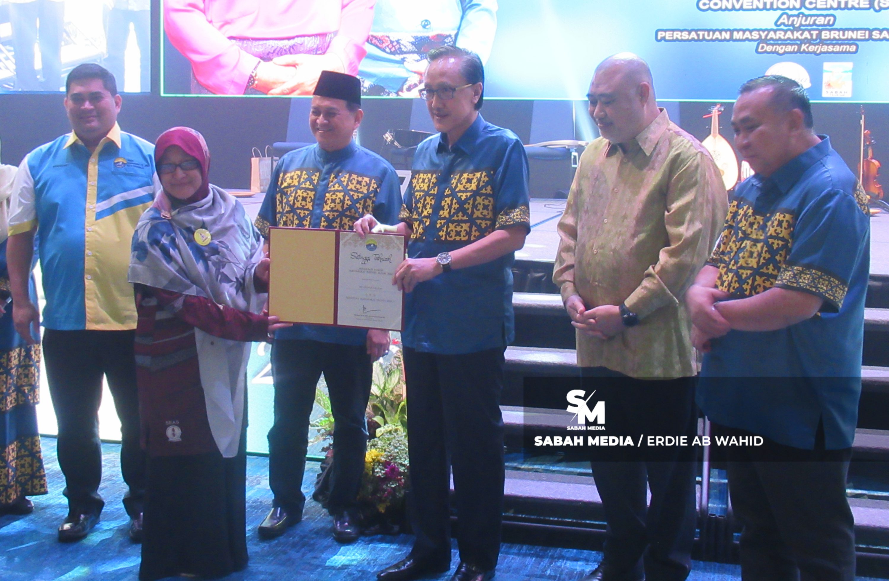 Pengiran Mohd Hussein dan Dr Zainab masing-masing menerima anugerah bagi katagori lelaki dan wanita pada Karnival Baurung-Urung anjuran Persatuan Masyarakat Brunei Sabah (PMBS).